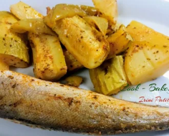 Μπακαλιαράκια με πατάτες και κολοκυθάκια στον φούρνο