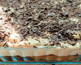 Πασπαλίζουμε από πάνω την τριμμένη σοκολάτα.