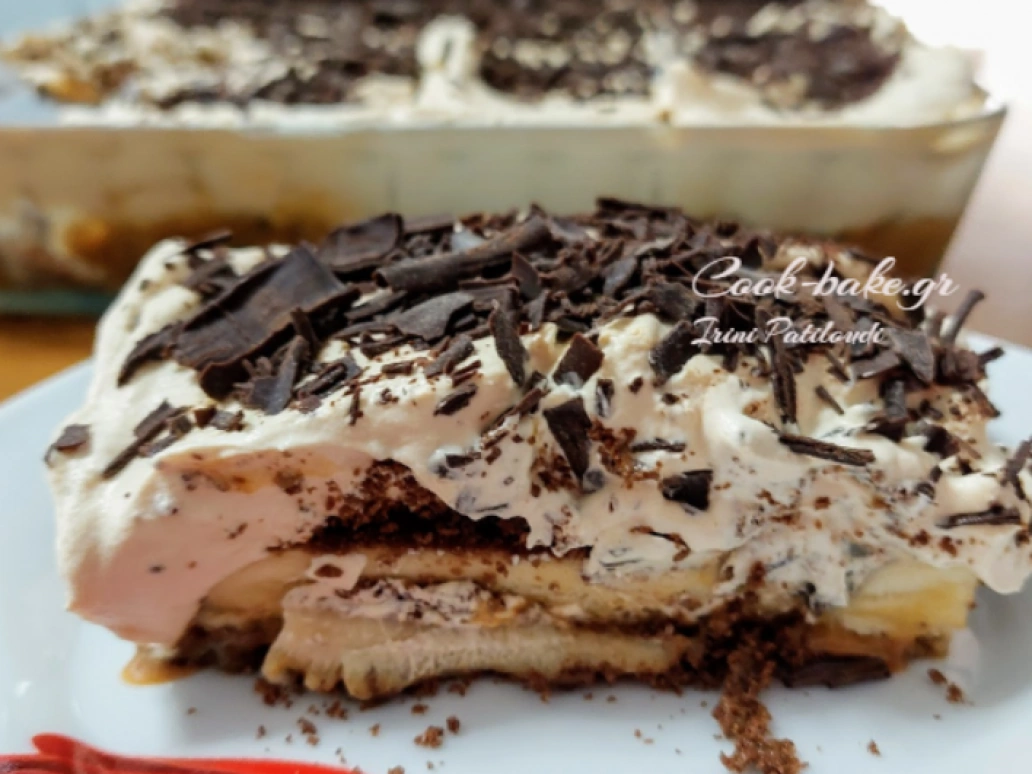 Φανταστικό Μπανόφι, (Banoffee) με πλούσια γεύση καραμέλας, μπανάνες, σαντιγί και γεμιστά μπισκότα σοκολάτας!