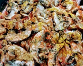 Σκεπάζουμε με τα μανιτάρια μας, αλατοπιπερώνουμε, βάζουμε ελάχιστο λάδι, το 1 ποτήρι νερό και τα υπόλοιπα μπαχαρικά και σκεπάζουμε πρώτα με λαδόκολλα και από πάνω αλουμινόχαρτο και βάζουμε στον ζεστό φούρνο.