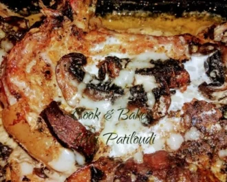 Σπαλομπριζόλες χοιρινές με μανιτάρια πορτομπέλο στον φούρνο ψημένες, κρέμα γάλακτος και κεφαλοτύρι στο τέλος.