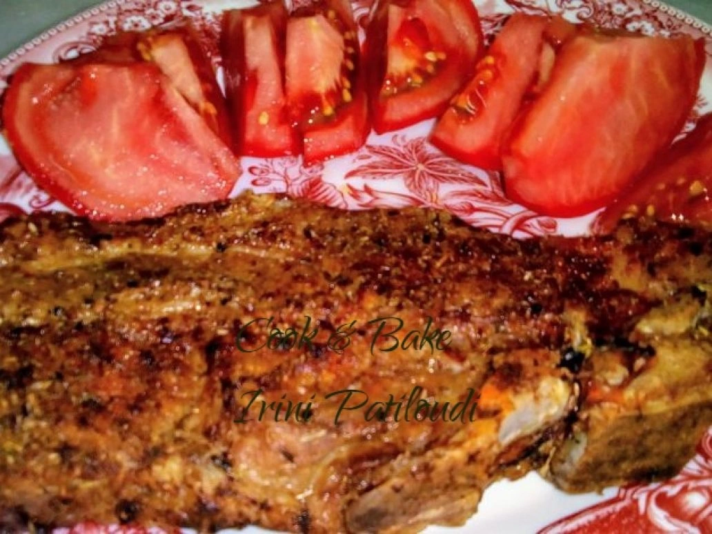 Μπριζόλες ψητές. Χοιρινές, λαιμού, πολύ μαλακές ψημένες στον φούρνο.