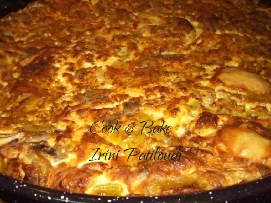 Ομελέτα φούρνου με μανιτάρια, πιπεριές και κρεμμύδια