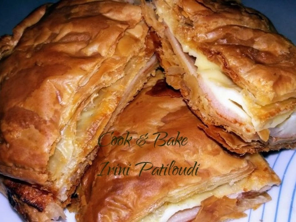 Πίτα αλμυρή σφολιάτας, με γαλοπούλα καπνιστή και γκούντα.