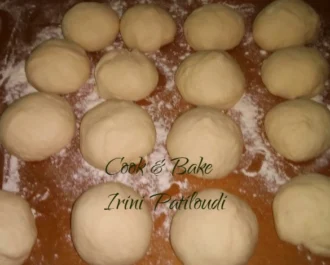 Κόβουμε την ζύμη σε 12 κομμάτια και τα κάνουμε μπαλάκια και αφήνουμε σκεπασμένα να ξεκουραστούν 15 λεπτά.