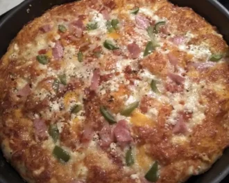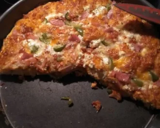 Ευχαριστούμε! Πίτα από την Νάουσα που θυμίζει αφράτη πίτσα με τυριά και ντομάτα.