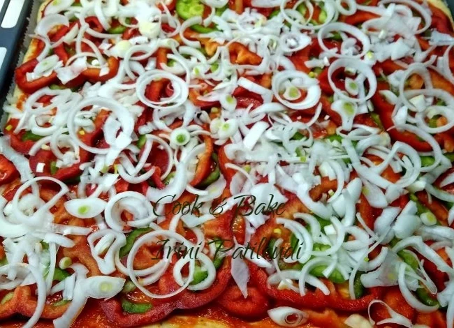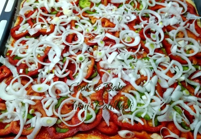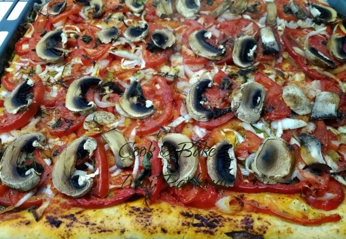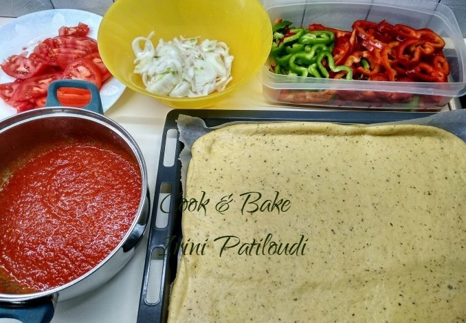 Πίτσα με λαχανικά τύπου λαδένια της φίλης Μαρία Λαμπράκη.