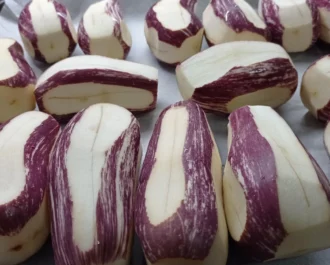 Χρησιμοποίησα μελιτζάνες τσακώνικες στην συνταγή με την ντομάτα, τις ανοιχτόχρωμες γιατί είναι πιο γλυκές και δεν πικρίζουν.