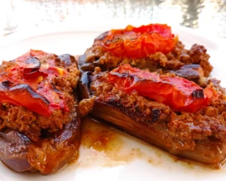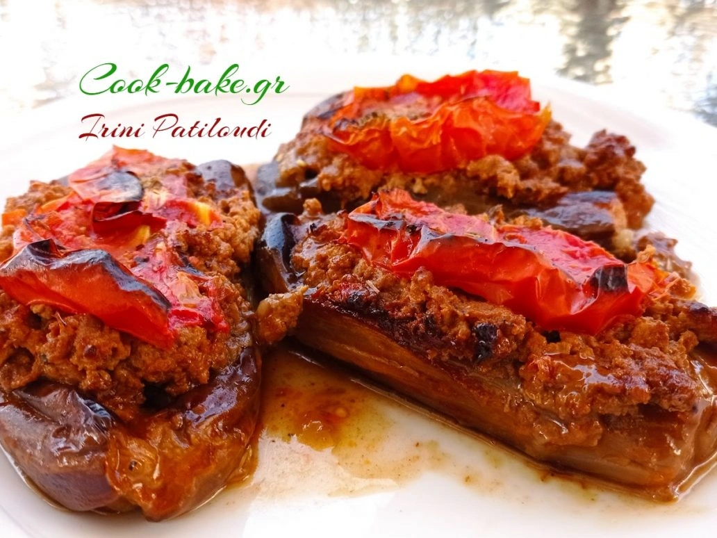 Παπουτσάκια μελιτζάνες με κιμά και ντομάτα