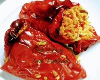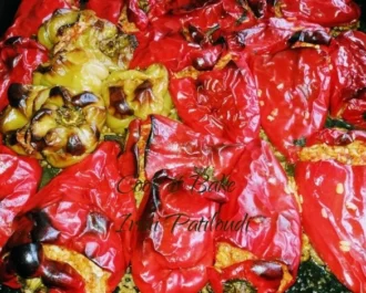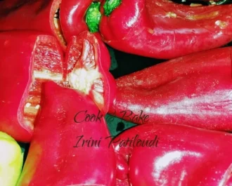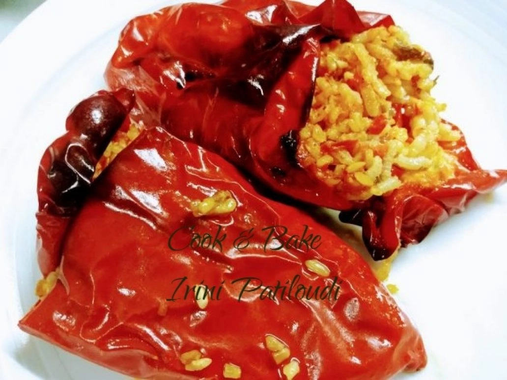 Πιπεριές κόκκινες Φλωρίνης γεμιστές με ρύζι και πλιγούρι