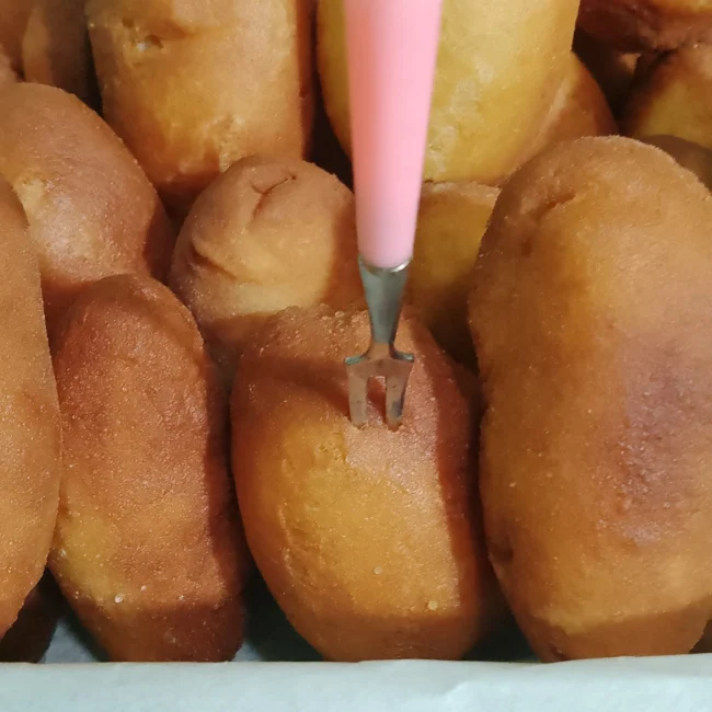 Υπέροχα αφράτα πιροσκί γεμιστά με λουκάνικα τύπου Φραγκφούρτης,