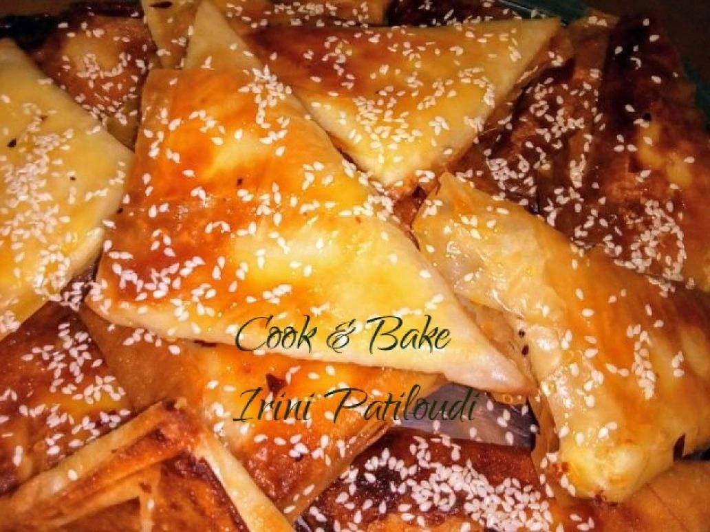 Πιτάκια τρίγωνα με ανθότυρο και μέλι.