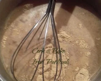 Όταν ζεσταθεί το νερό, λίγο πριν κάψει (όχι να βράσει) ρίχνουμε κουτάλα -κουτάλα το αλεύρι. Ανακατεύουμε συνεχώς για να μη σβολιάσει, ώσπου να πετύχουμε μια κρέμα χωρίς σβόλους. Προσοχή όταν αρχίσει να βράζει, να μην καείτε!