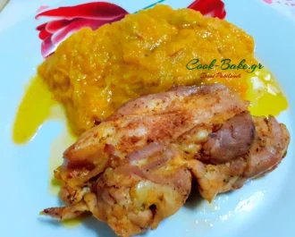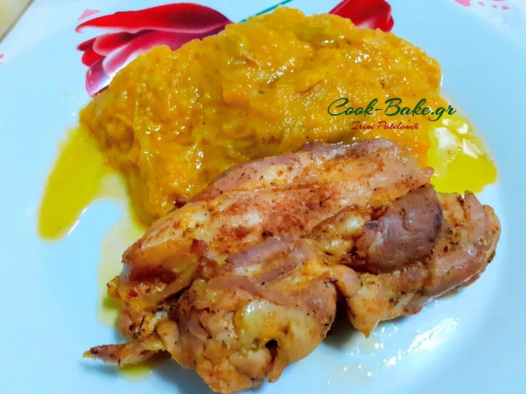 Πουρές γλυκοπατάτας με κοτόπουλο μπούτι ψητό