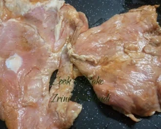 Προσθέτουμε ζουμί της μαρινάδας να είναι στα 3/4 του ταψιού γιατί θέλουμε να μείνει ζουμερό. Λίγο ελαιόλαδο, αλάτι, πιπέρι , πάπρικα καπνιστή και ρίγανη.