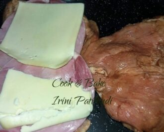 Ψήνουμε στους 200 βαθμούς σε καυτό φούρνο σκεπασμένο για 1 ώρα και 10 με 15 λεπτά ξεσκέπαστο να πάρει χρώμα. Αν θέλουμε στο τέλος πασπαλίζουμε με λίγο κίτρινο τυρί.