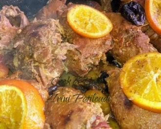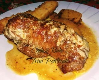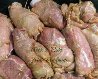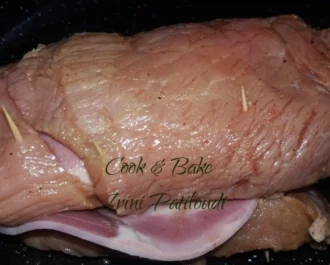 Ρολάκια χοιρινά με κρασί, ξίδι και φρούτα.