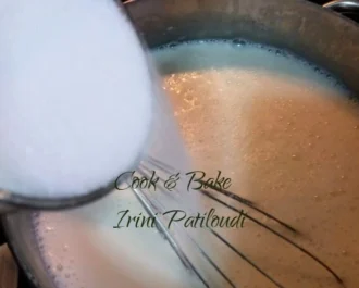 Ανακατεύουμε συνέχεια να μην μας κολλήσει και προσθέτουμε το γάλα που κρατήσαμε με το άνθος αραβοσίτου. Ανακατεύουμε με σύρμα συνέχεια μέχρι να αρχίσει να κοχλάζει και αποσύρουμε από την εστία.