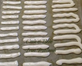 Ανάβουμε τον φούρνο στους 180 βαθμούς. Σε λαδόκολλα, φτιάχνουμε μπαστουνάκια με τη ζύμη που είναι στην σακκούλα.