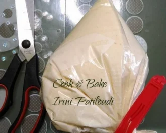 Βάζουμε τη ζύμη σε δύο σακούλες (poches) και αφήνουμε 1/2 ώρα στο ψυγείο.