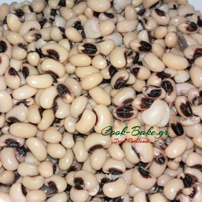 500γρ φασόλια μαυρομάτικα μουλιασμένα από το βράδυ και βρασμένα για 30 με 40 λεπτά περίπου