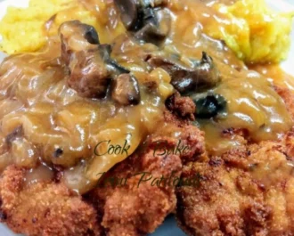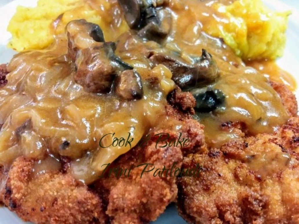 Με σάλτσα κρεμμυδιών και μανιταριών.