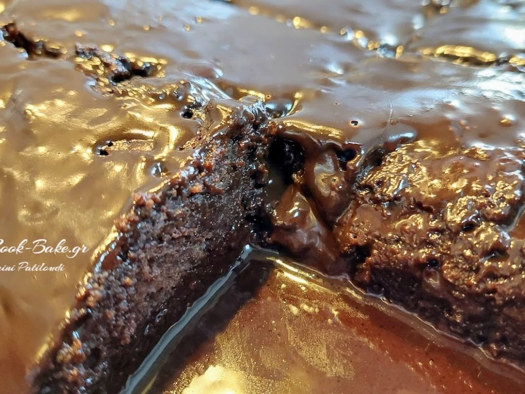 Σοκολατόπιτα κατσαρόλας με γλάσο σοκολάτας