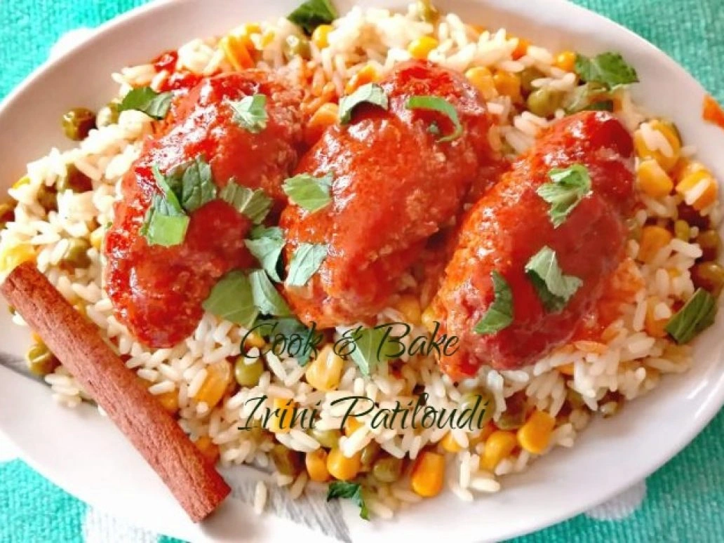 Σουτζουκάκια με ρύζι, αρακά και καλαμπόκι της φίλης Βιβής Μυλωνά.