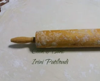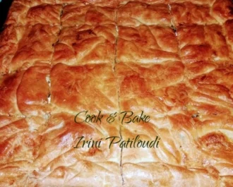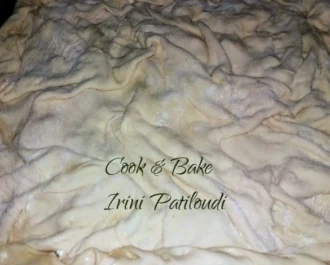 με δύο βουτυρωμένα φύλλα, την συνταγή για την ζύμη θα βρείτε εδώ…