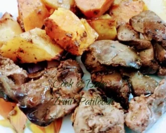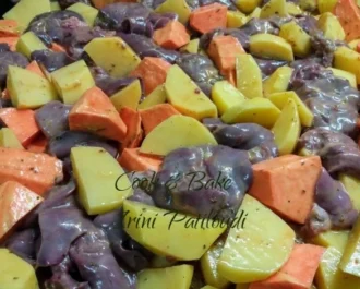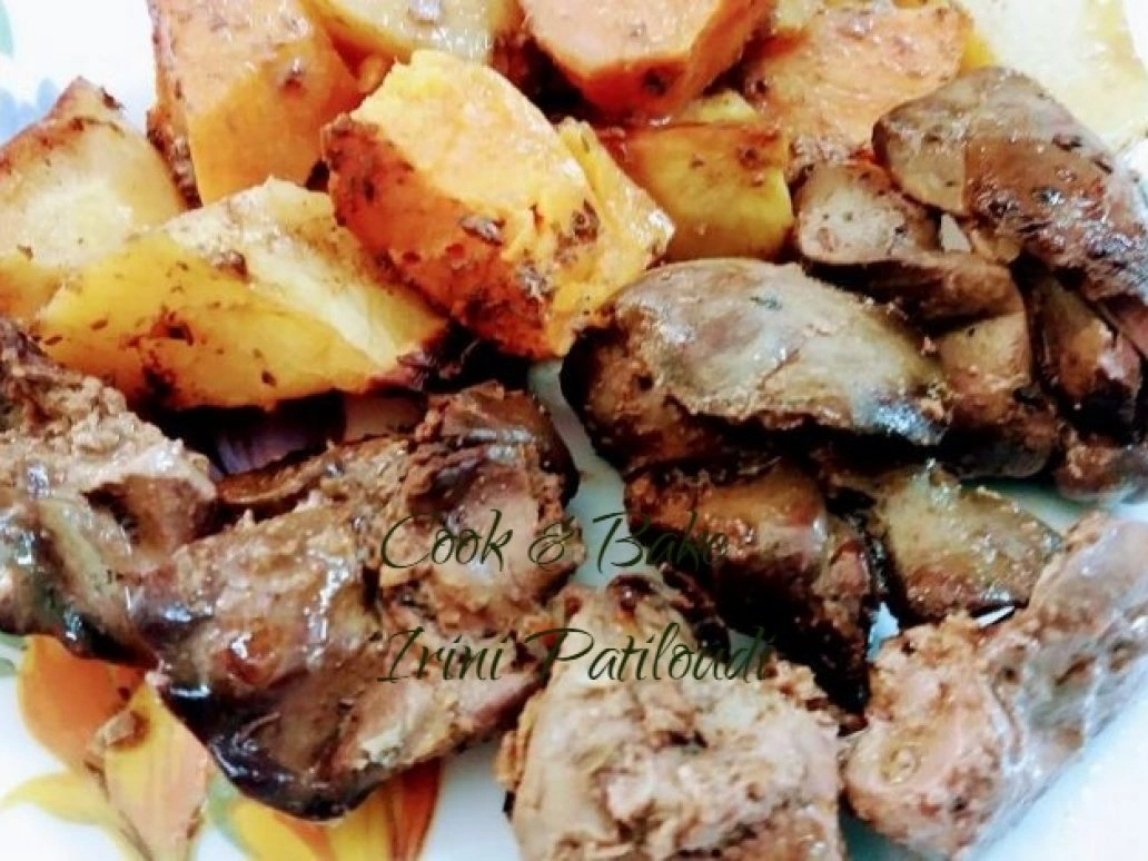 Συκωτάκια κότας με πατάτες και γλυκοπατάτες