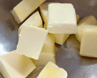 Κόβουμε το κρύο βούτυρο μας σε κομμάτια.