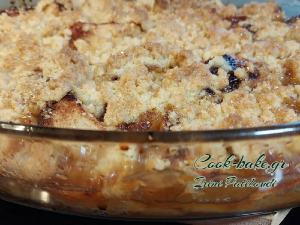 Πολύ νόστιμη τάρτα σαν μηλόπιτα μόνο με κραμπλ, crumble από πάνω.