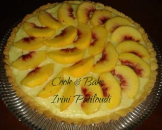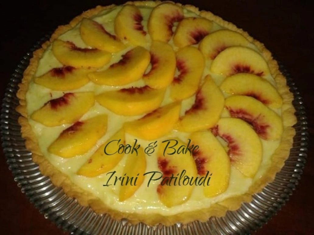 Τάρτα με κρέμα και ροδάκινα της φίλης Areti Trimintziou.