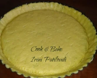 Ζυμώνουμε την ζύμη μας, τοποθετούμε σε φόρμα τάρτας ή ταψάκι χαμηλό. Ψήνουμε 20' στους 180 ¤C τρυπώντας με πιρούνι όλη την επιφάνεια και πλαϊνά για να μη φουσκώσει η ζύμη.