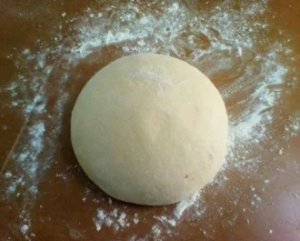 Ζυμώνουμε καλά όλα τα υλικά της ζύμης . Να γίνει μία εύπλαστη ζύμη σαν του ψωμιού. Την αφήνουμε μισή ώρα σκεπασμένη να ξεκουραστεί.