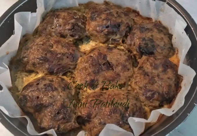 Πρόσθεσα μια κούπα ζεστό νερό και έβαλα στον προθερμασμένο φούρνο για 1 ώρα περίπου στους 180°.