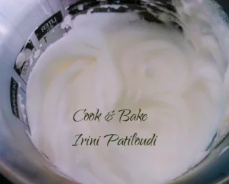 Αδειάζουμε την μαρέγκα και με απαλές κινήσεις με κουτάλι ή μαρίζ ανακατεύουμε να ενωθούνε και αυτά απαλά όμως να μην μας φύγει ο αέρας από το χτύπημα που κάναμε πριν στους κρόκους και στα ασπράδια.