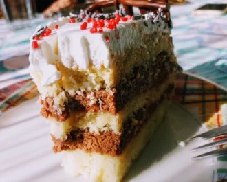 Τούρτα άσπρη – μαύρη με σπιτικό παντεσπάνι