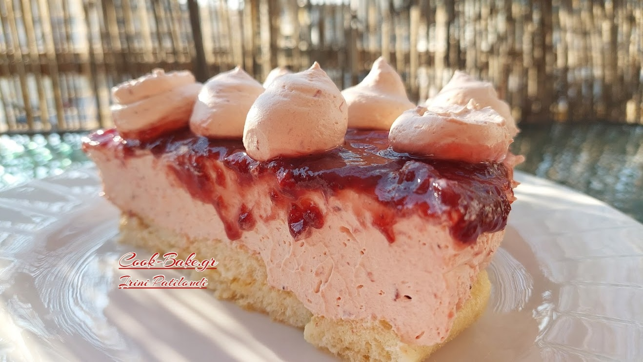 Τούρτα τεμπέλικη με κρέμα σαβαγιάρ και μαρμελάδα