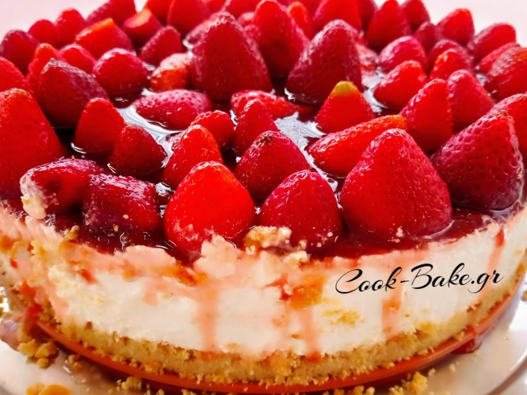 Τούρτα τσιζ κέικ με φράουλες, εύκολη