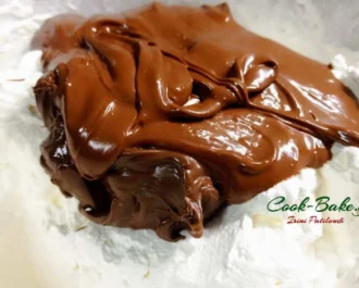 Προσθέτουμε την μερέντα και ανακατεύουμε καλά και απαλά .