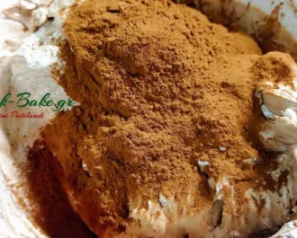 Το ίδιο κάνουμε και με το κακάο και ανακατεύουμε καλά.