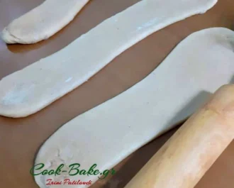 Αφού ακολουθήσαμε τις οδηγίες τις άνω συνταγής, ανοίγουμε με τον πλάστη τα κορδόνια που πλάσαμε.