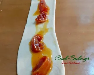 Τα ανοίγουμε όσο πιο πλατιά και μακριά μπορούμε. Απλώνουμε ομοιόμορφα το γλυκό κουταλιού και κλείνουμε με τα δάχτυλα.