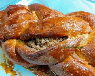 Τσουρέκι γεμιστό με γλυκό κουταλιού πορτοκάλι