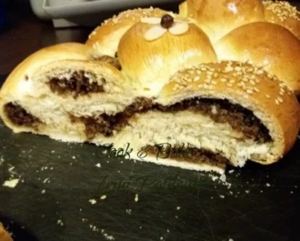 Αλείφουμε με τον κρόκο και πασπαλίζουμε από πάνω με ότι θέλουμε, σουσάμι, αμύγδαλο. Ψήνουμε στους 180 βαθμούς για 30 λεπτά.