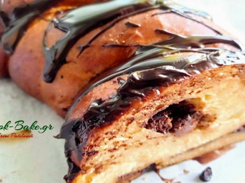 Τσουρέκι με πραλίνα φουντουκιού και σοκολάτα