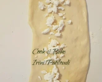 Διπλώνουμε στη μέση βάζουμε το τυρί, τυλίγουμε και στρίβοντας αντίθετα τις άκρες φτιάχνουμε στρογγυλά κουλούρια.