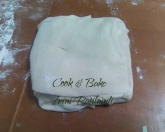 Ανοίγουμε το κάθε φύλλο. Αλείφουμε με 2 κουταλιές της σούπας μαργαρίνη σοφτ, διπλώνουμε ξαναλείφουμε, διπλώνουμε ξανά μέχρι να μην πάει άλλο, τυλίγουμε κάθε κομμάτι σε μεμβράνη και τα βάζουμε στο ψυγείο για μία ώρα.