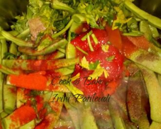 Προσθέτουμε τα φασολάκια , τα γυρνάμε δυο, τρεις φορές και προσθέτουμε τα υπόλοιπα υλικά εκτός της ρίγανης.